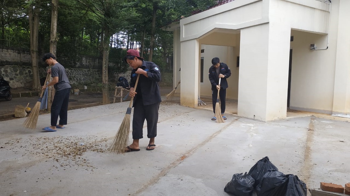 Mahasiswa yang tergabung dalam organisasi Mahapala (Mahasiswa Huffazh Pecinta Alam) STIU Wadi Mubarak, dan beberapa mahasiswa lain dari Semester 5 dan 3 mengikuti kegiatan bakti sosial kerja bakti di daerah Cimandala, Bogor pada Rabu (2/11/2022).