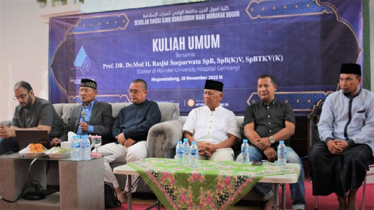 “Menjaga kesehatan itu penting, bagaimana kita mau produktif dan bekerja keras jika tubuh kita sakit-sakitan?”, begitu kurang lebih yang disampaikan Prof. Rasjid Soeparwata saat mengisi kuliah umum di Sekolah Tinggi Ilmu Ushuluddin (STIU) Wadi Mubarak Bogor pada Ahad (20/11/2022) yang berlokasi di Masjid Jami’ Islamic Center Wadi Mubarak.